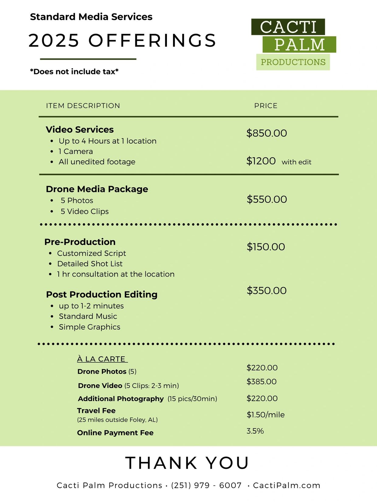 Please call 251-979-6007 or email Dylan@CactiPalm.com if you have questions regarding services or scheduling.